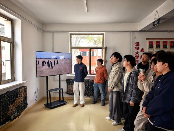参观结束后,基地学生社区组织开展了激光模拟射击体验活动,详细讲解射击要领、安全规范及操作流程,并示范握枪、瞄准、击发等动作。参与师生严格遵守纪律,依次有序上场,在模拟射击中感受军事训练的严谨与挑战,锻炼了专注力与意志力。